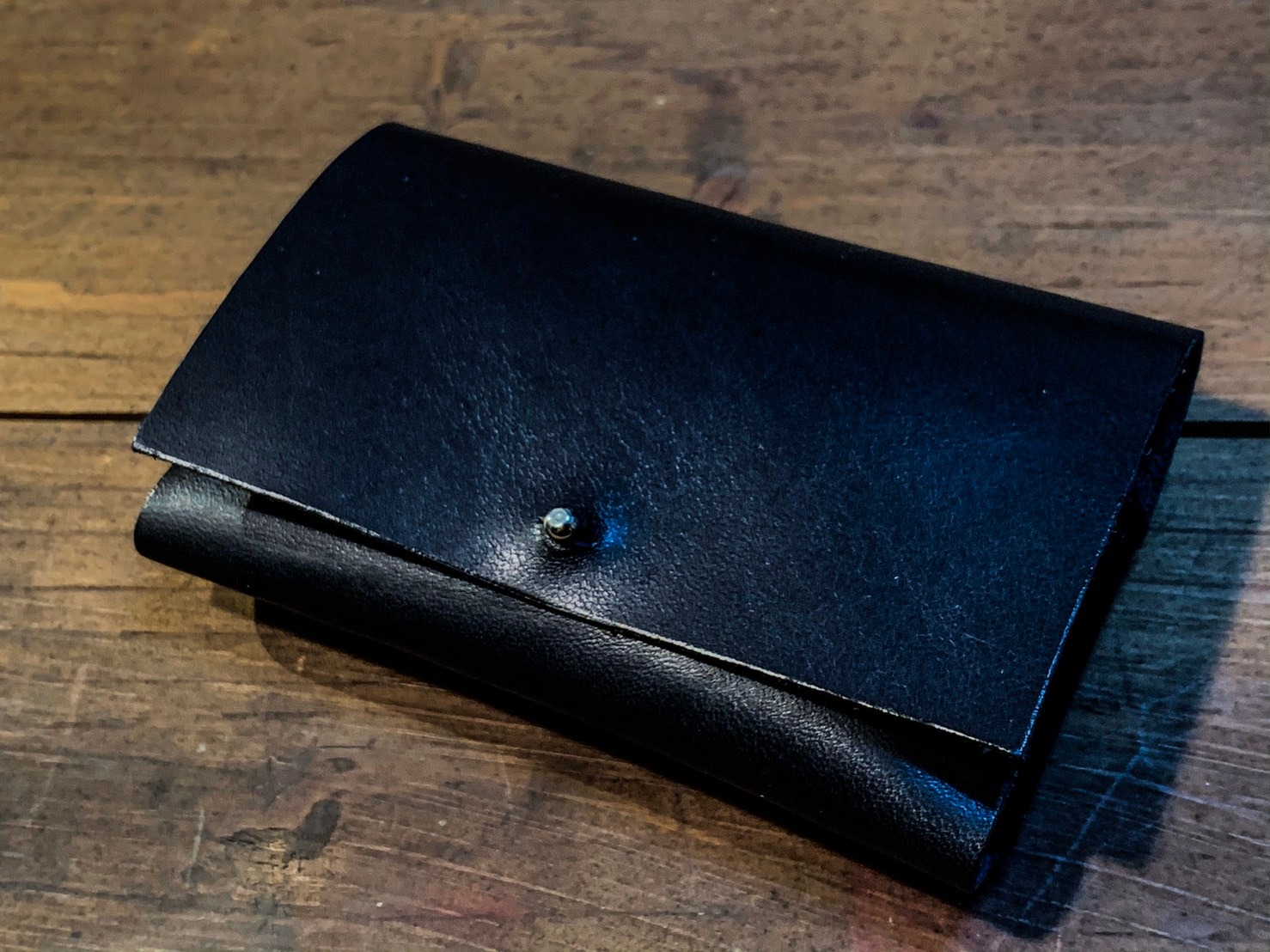 黒いダイヤシリーズで使う革はもちろん黒。ヌメ革、プルアップレザー、イビザの黒革を用いて作品を仕立てます。