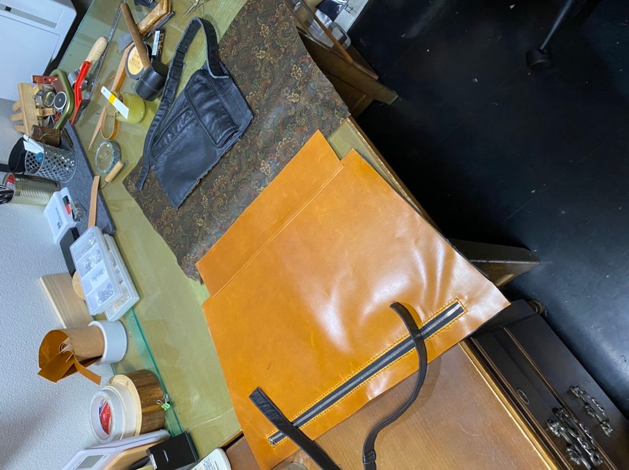 最近、トートバッグの注文が多い印象です。リメイクだけでなく、オーダーメイドでの革トートバッグ製作も承ります。お気軽にご相談ください。